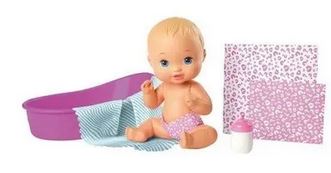 ma brincadeira cheia de surpresa com as bonecas Bebê Surpresas Mágicas! Descubra a personalidade da boneca recém-nascida e adapte seu estilo — ela pode ser esportiva, gostar de unicórnios, gatinhos ou ser muito vaidosa! Para descobrir, encha a banheira de água e coloque-a dentro. A fralda de papel se dissolve, revelando qual seu tema. Depois, mergulhe um dos presentes e descubra uma roupinha temática e certidão de nascimento. O próximo presente revela uma faixa de cabelo, par de sapatos e um brinquedo para o bebê. Vista sua boneca em sua linda roupa que combina com sua personalidade!